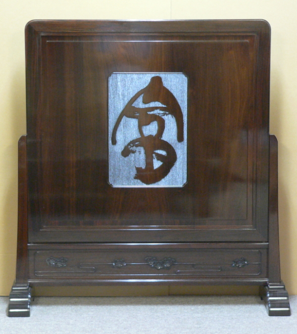 紫檀拭漆富士山彫衝立