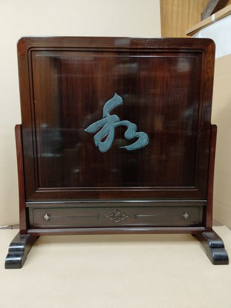 紫檀拭漆扇面四君子彫衝立