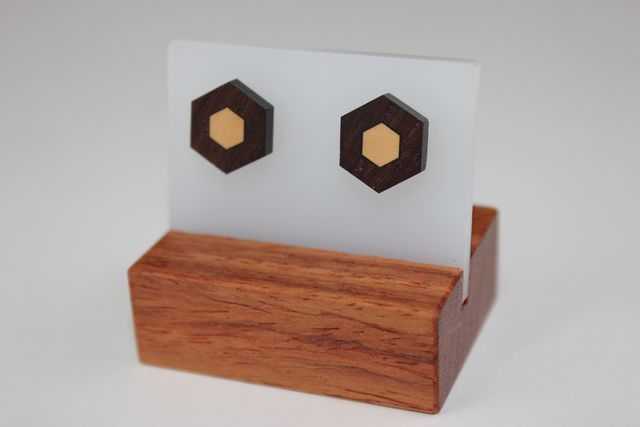 ヘキサゴン 材質/本紫檀材 仕上げ/ウレタン 取付具/樹脂 サイズ/厚み2mm×10mmM6 価格/1,540円(税抜価格1,400円) |