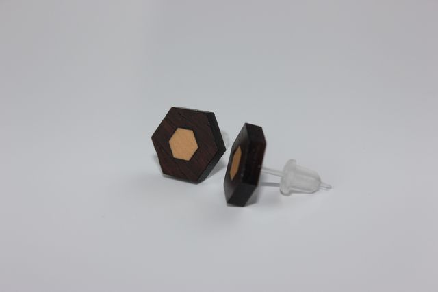 ヘキサゴン(黄楊象嵌入り) 材質/本紫檀材・黄楊材 仕上げ/ウレタン 取付具/樹脂 サイズ/厚み2mm×10mmM6 価格/1,980円(税抜価格1,800円) |