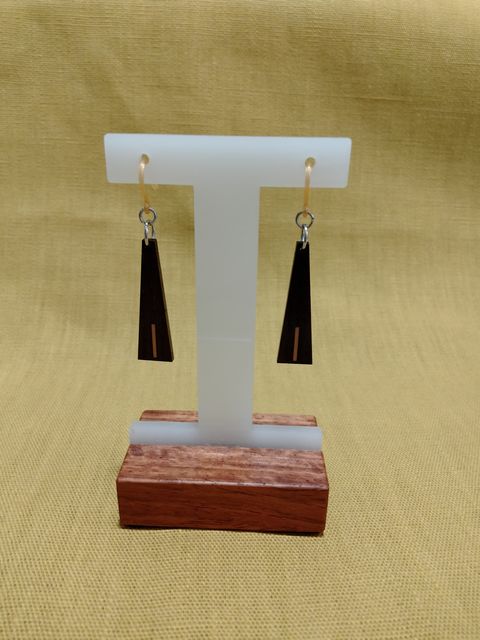 トラぺゾイド(黄楊象嵌入り) 材質/本紫檀材・黄楊材 仕上げ/ウレタン 取付具/樹脂 サイズ/厚み2×9×30mm 価格/2,860円(税抜価格2,600円) |
