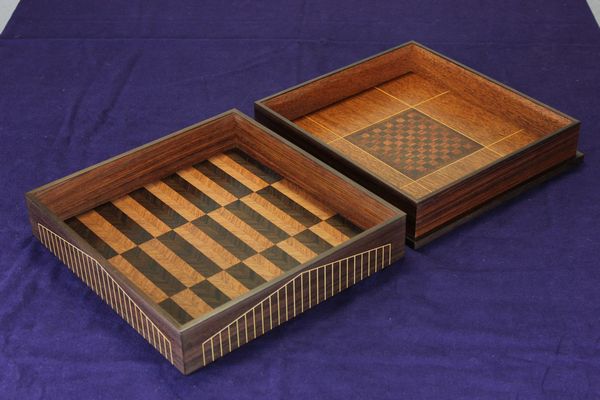 もう1枚は箱の中の底板花梨の一枚板に象嵌しツゲの線象嵌を入れました。