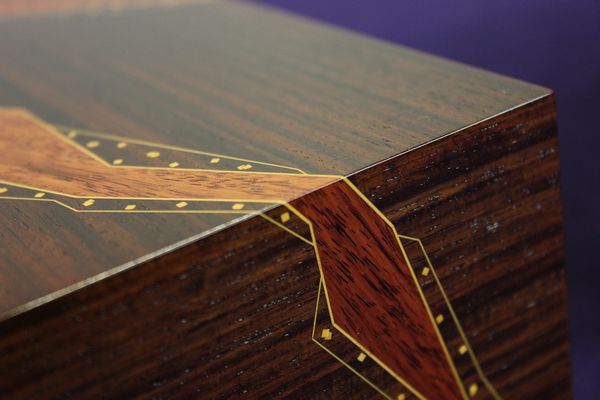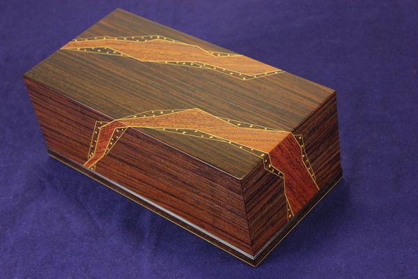 川の流れを花梨とツゲの象嵌でシンプルにした華飾を表現しました。