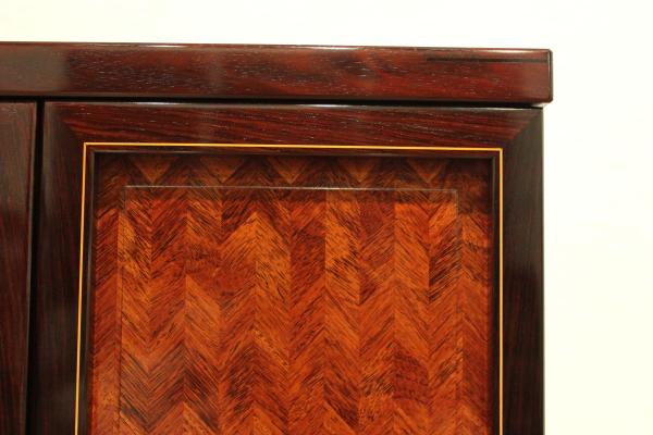 大阪唐木指物技法の特徴は、柱・框(カマチ)に溝を突きそこに板を各品に合った厚みに削り入れて作ります。