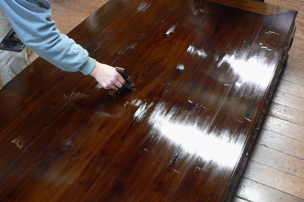 漆によるかぶれ、色落ち、艶がすぐに落ちる、水がこぼれるとか濡れた物を置くと片がのこるなどが起こりました。