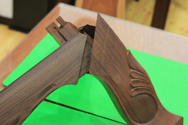 大阪唐木指物では、ホゾ穴を作り、留めを切り、ホゾを作り指し合わせます。