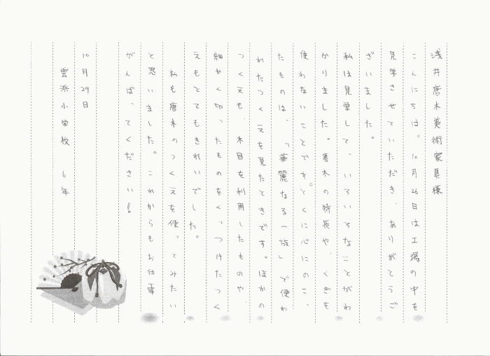 生徒さん全員からお手紙をいただき、ありがとうございました